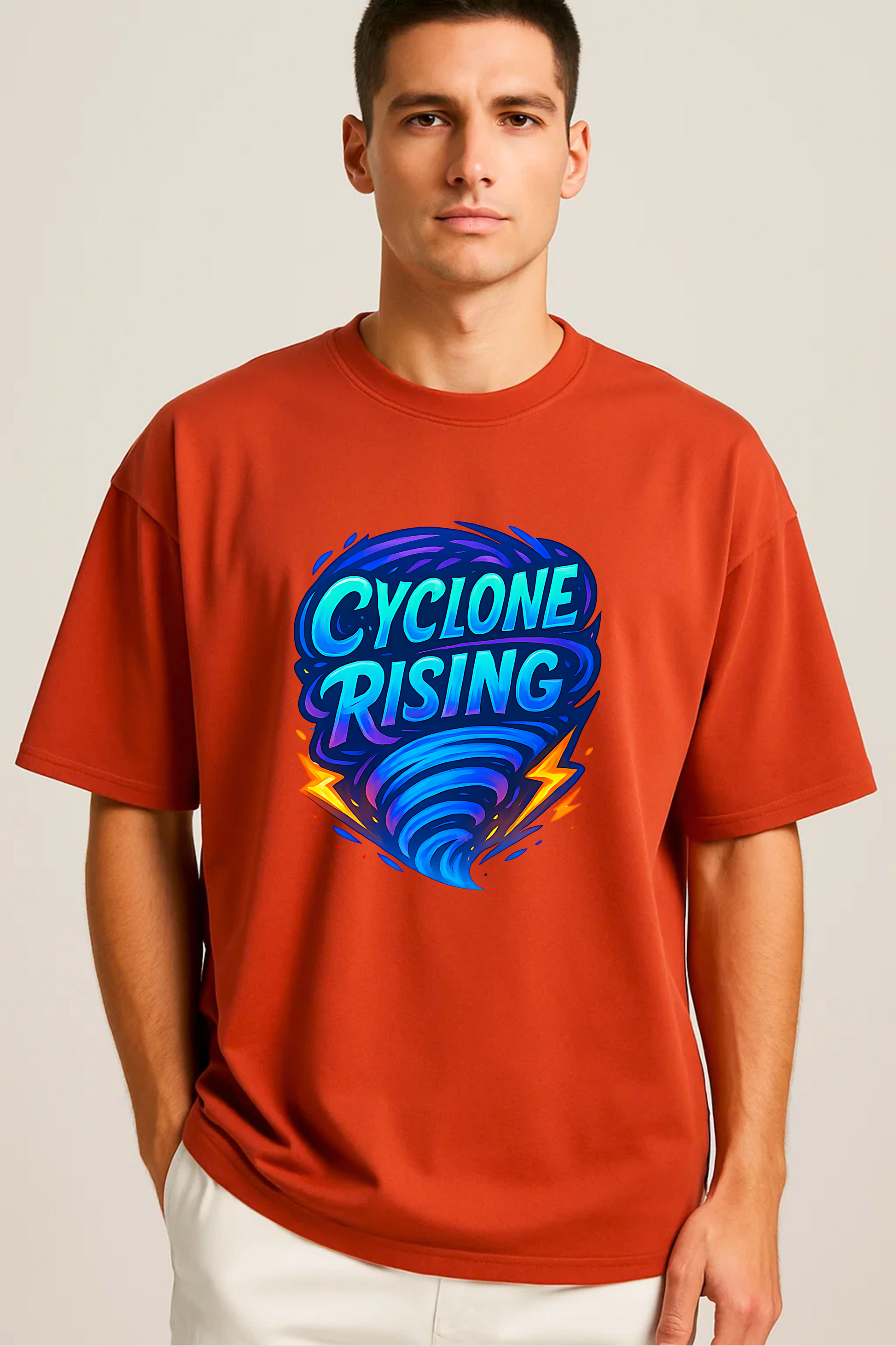 This premium oversized 100% cotton brick red t-shirt captures the unstoppable force of a storm — the words Cyclone Rising designed in swirling elemental typography, alive with motion and raw energy. It’s more than design; it’s a declaration of resilience, chaos harnessed, and the will to rise stronger no matter what surrounds you.