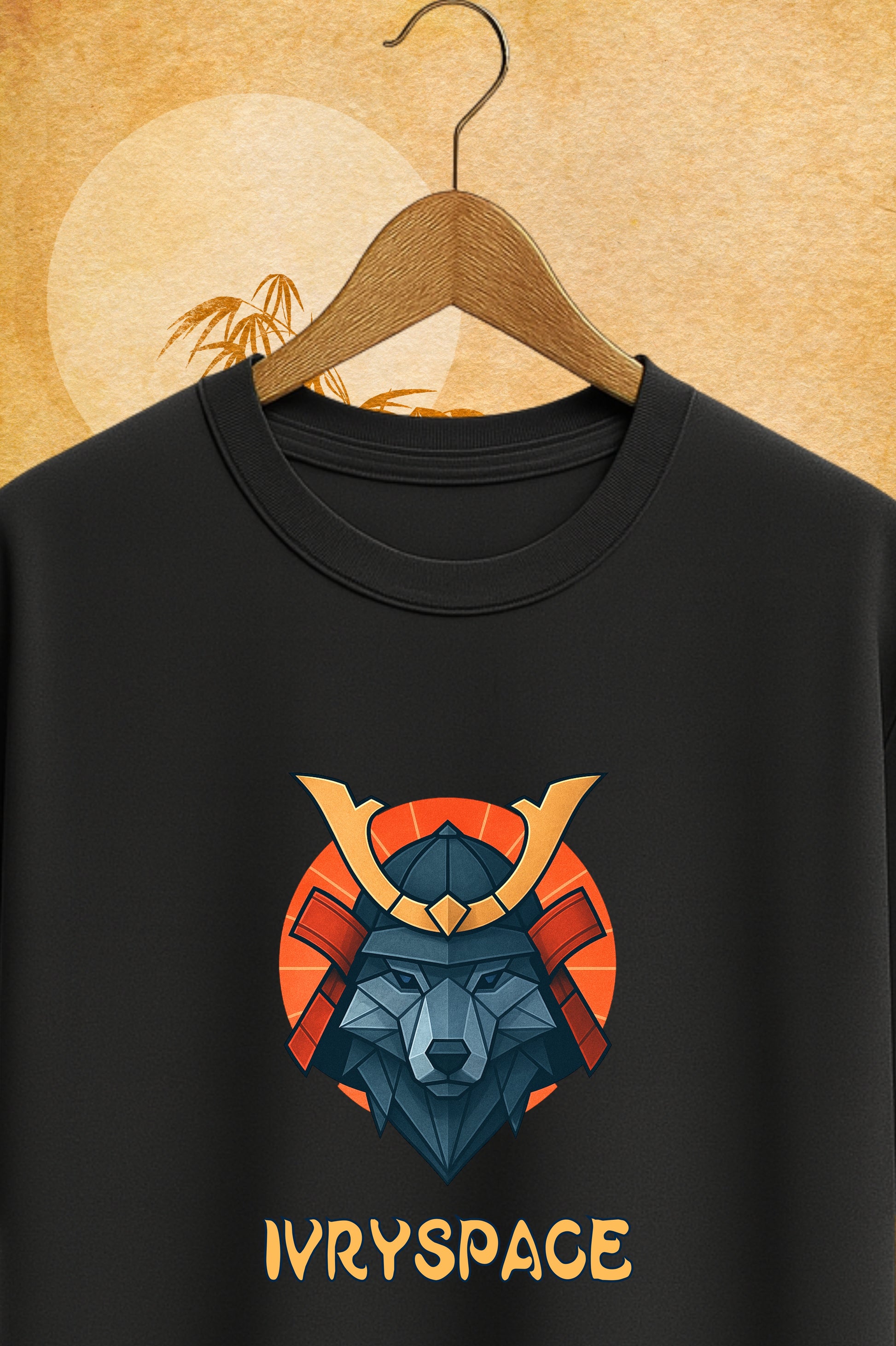 This premium oversized 100% cotton black t-shirt fuses primal instinct with warrior spirit — an origami wolf clad in intricate samurai armor, poised between shadow and honor. It’s a design that speaks of loyalty, precision, and the courage to face any battle.