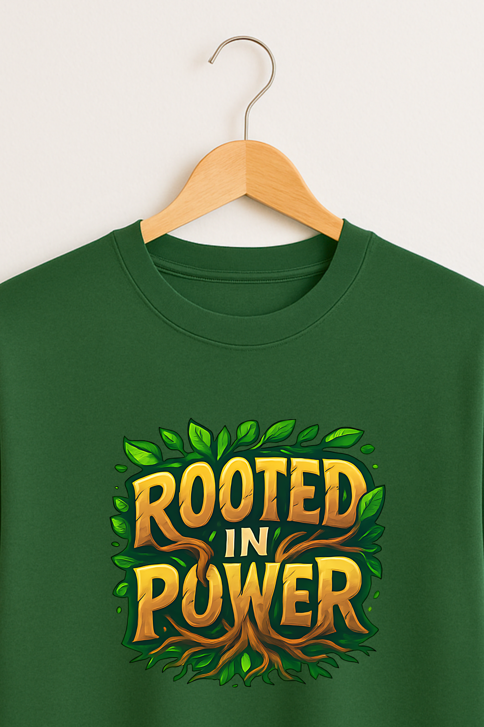 Rooted In Power – Elemental Word Art Forest Green T-Shirt