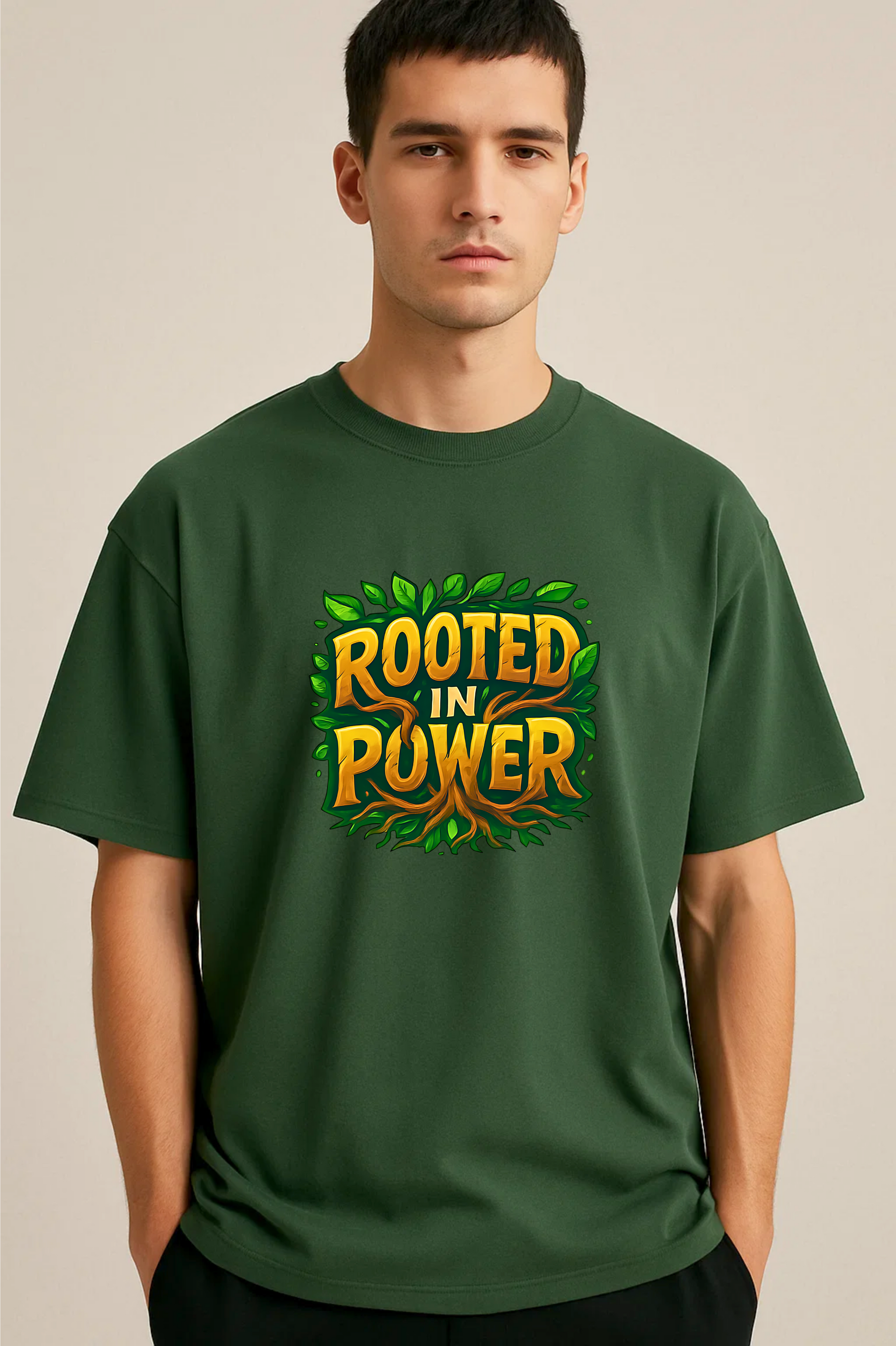 This premium oversized 100% cotton forest green t-shirt grounds you in strength — the words Rooted In Power sculpted in bold, earth-inspired typography that channels stability, resilience, and unshakable confidence. It’s more than design; it’s a reminder that true power comes from deep roots and steady foundations.